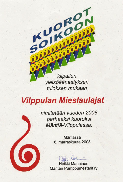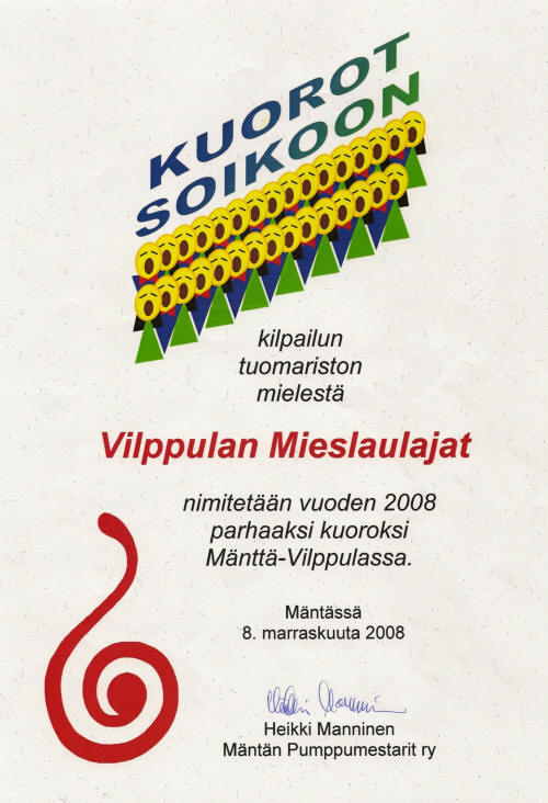 2008 Mänttä-Vilppulan kuorojen laulukilpailu 08.11.2008 Mäntän Klubilla