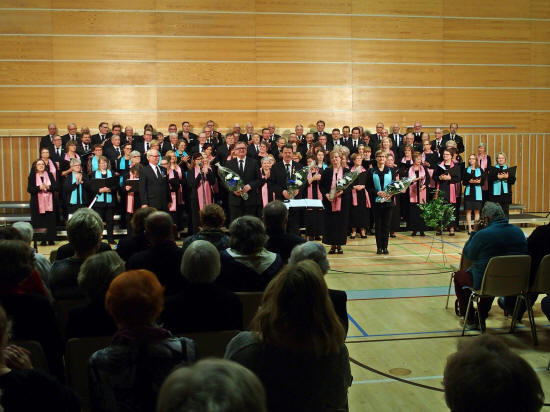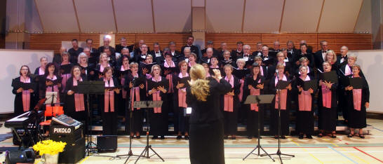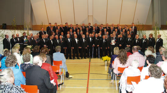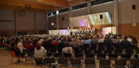 Ruoveden Mieskuoro, Lähteen Likat. Lavalla 100 laulajaa.