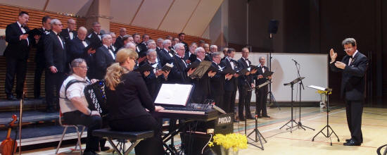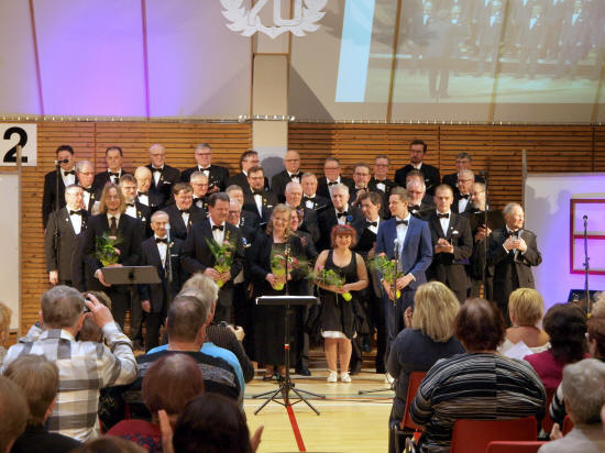miestä lavalla - Kolmen Mieskuoron SUURI YSTÄVÄNPÄIVÄKONSERTTI