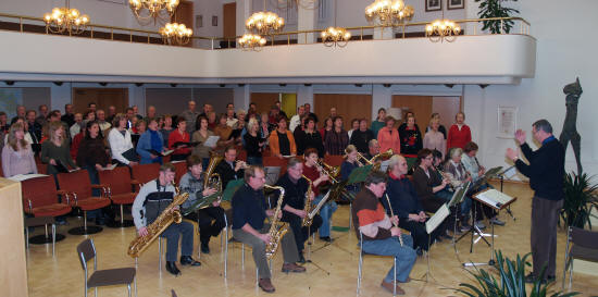 Yhteisharjoitukseen liittyi myös Mäntän soittokunta