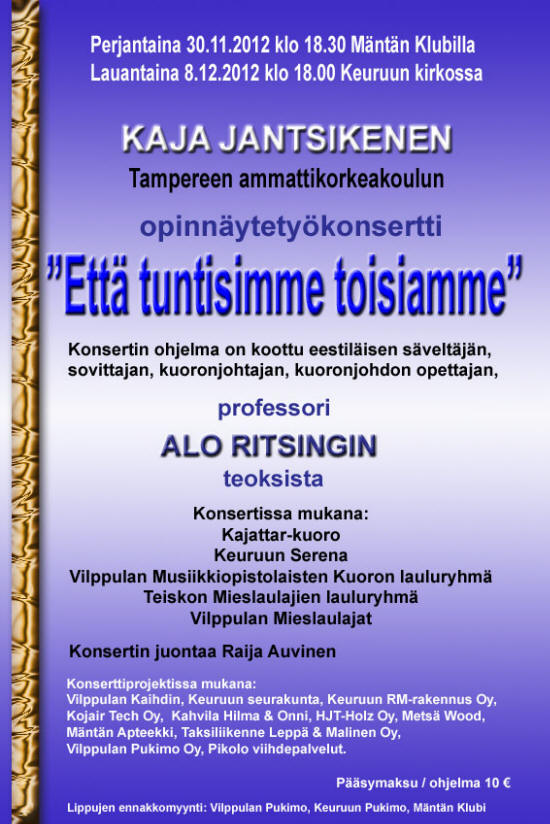 Konsertti alkaa klo 16.00. Tervetuloa!